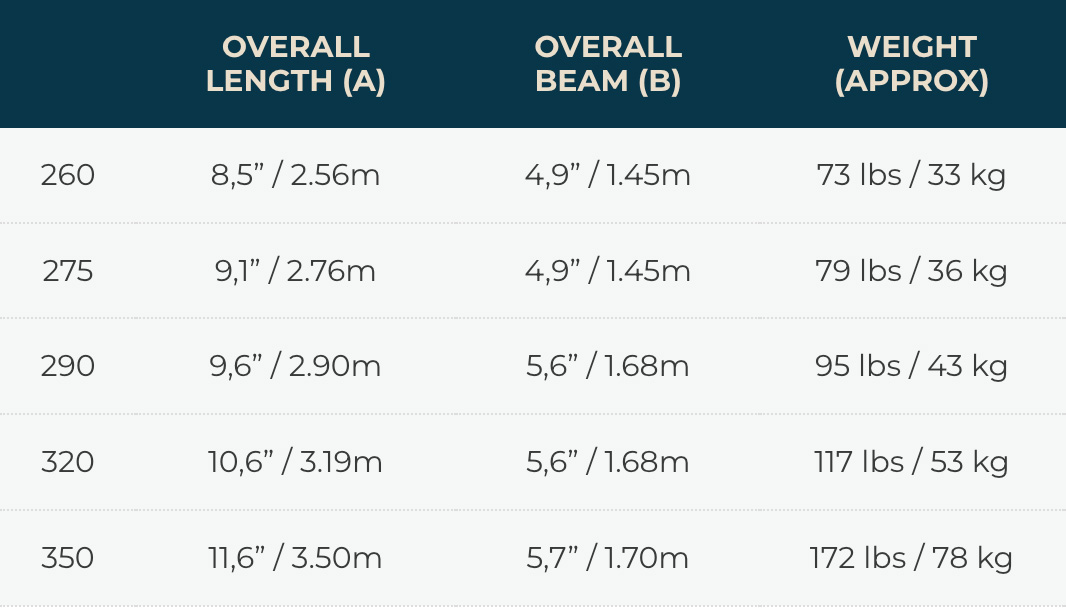 • Oarlocks – (260, 275, 290 & 320)