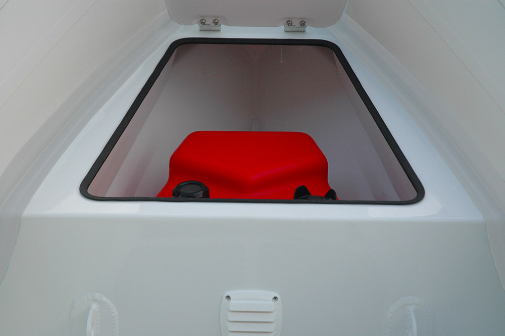 OXXEAN™ ALUMA features an optional bow locker where a 6 gallon fuel tank can be fitted allowing a cleaner deck, a better performance (extra weight in bow) and an additional seat on bow.